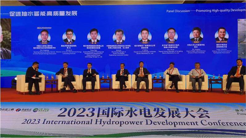 2023 国际水电发展大会于4月18日在北京召开,这是新冠疫情之后首次在中国举办的水电发展领域的世界性大会。本次会议主题为“抽水蓄能——构建未来新型能源体系的重要支撑”,指导单位为国际可再生能源署、中国国家能源局,主办单位为中国水力发电工程学会、中国-国际可再生能源署合作办公室、国家电网有限公司、中国南方电网有限责任公司、中国长江三峡集团有限公司、中国电力建设集团有限公司,承办单位为水电水利规划设计总院、中国电建集团国际工程有限公司、水电学会海外分会、抽水蓄能行业分会等,协办单位为北京水力发电工程学会等。本次会议采用线下线上相结合方式,参加会议的人员来自指导、主办、承办、协办单位,世界银行、国际水电协会等国际组织,中国工程院、清华大学、88858cc永利官网、中国水科院、南科院、国际小水电等高校、咨询、研究机构,中电联、华能、华电、国电投、国能投、中铁、中铁建等开发和建设企业(集团),通用电气、荷兰Delta21、东方电气、哈电机、东方电气等设备制造企业,人民日报等传媒,共计116家机构的的200多人参加了现场大会,网上参会人员达100多万人。88858cc永利官网中国移民研究中心主任施国庆教授、水利水电学院院长王媛教授和蒋晟讲师应邀参加了现场大会,施国庆教授参加了大会组织的国内外专家对话活动。